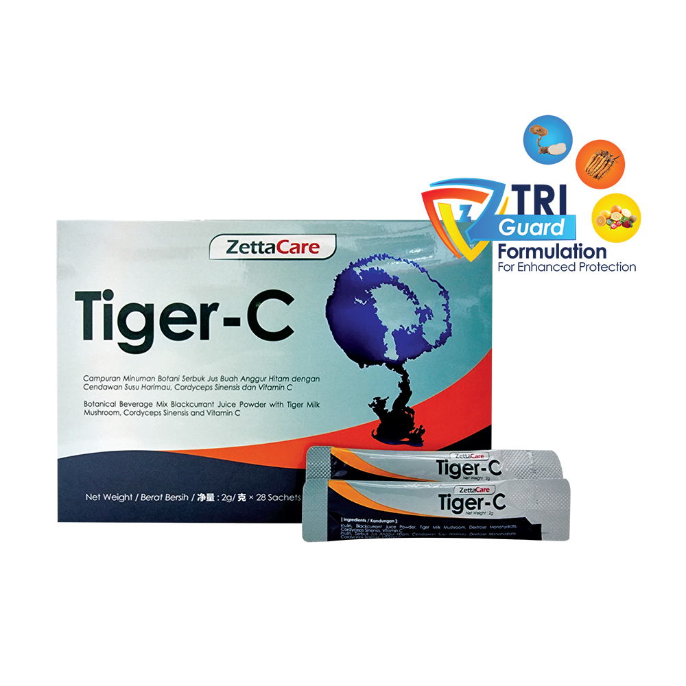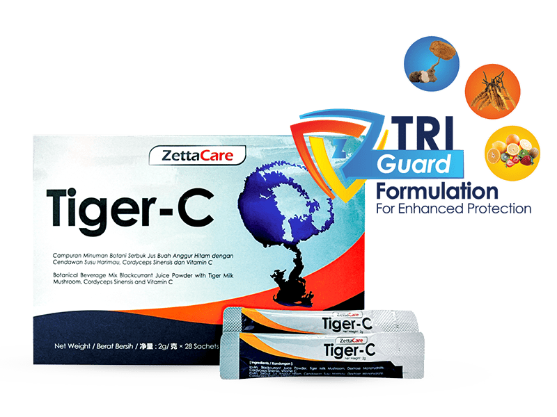 ZettaCare Tiger-C is formulated with Clinically proven combination of Tiger Milk Mushroom, Cordyceps sinensis and Vitamin-C for better respiratory health.
